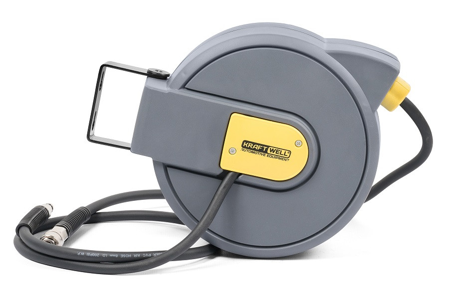 Катушка для подачи сжатого воздуха или воды, закрытая пластиковая. Диаметр шланга 8х12 мм. Шланг PVC, длина шланга 10+1 метров.
