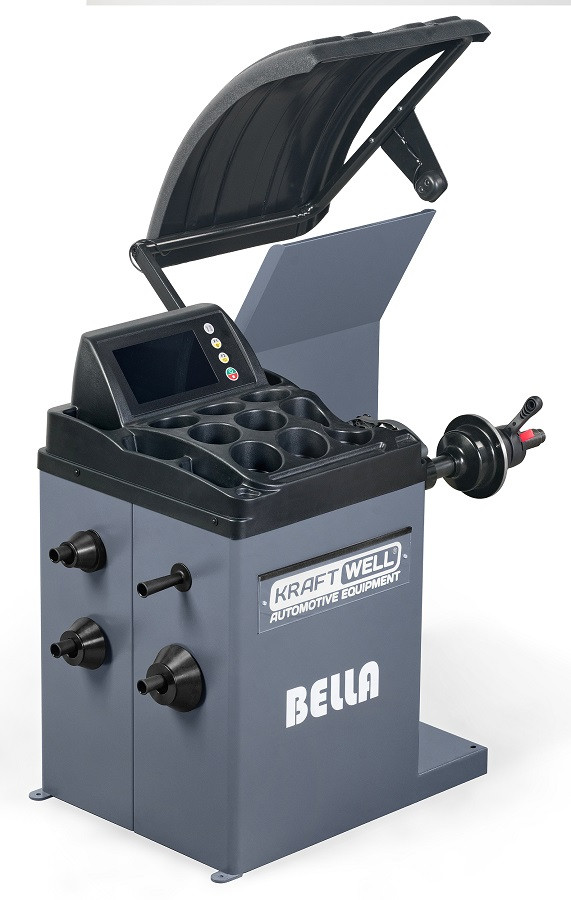 Станок балансировочный BELLA с сенсорным дисплеем 7", автоматический ввод 3-х параметров, напряжение 220 В, диаметр дисков 10-30", вес колеса до 80 кг, вал 40 мм.