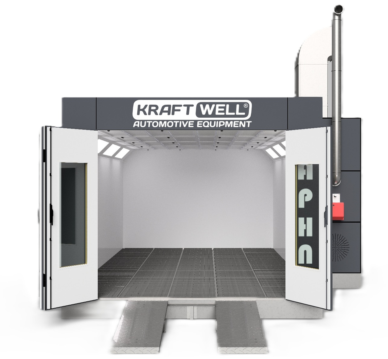 Покрасочно-сушильная камера 6,9 х 3,9 х 2,7 м., 5,5 и 5,5 кВт, 20 000 м3/ч, дизельная двухступенчатая горелка, освещение верхнее наклонное 8х4х18=576 Вт, тепловая мощность 202 кВт, 3-х створчатые ворота, сервисная дверь, металлическое основание